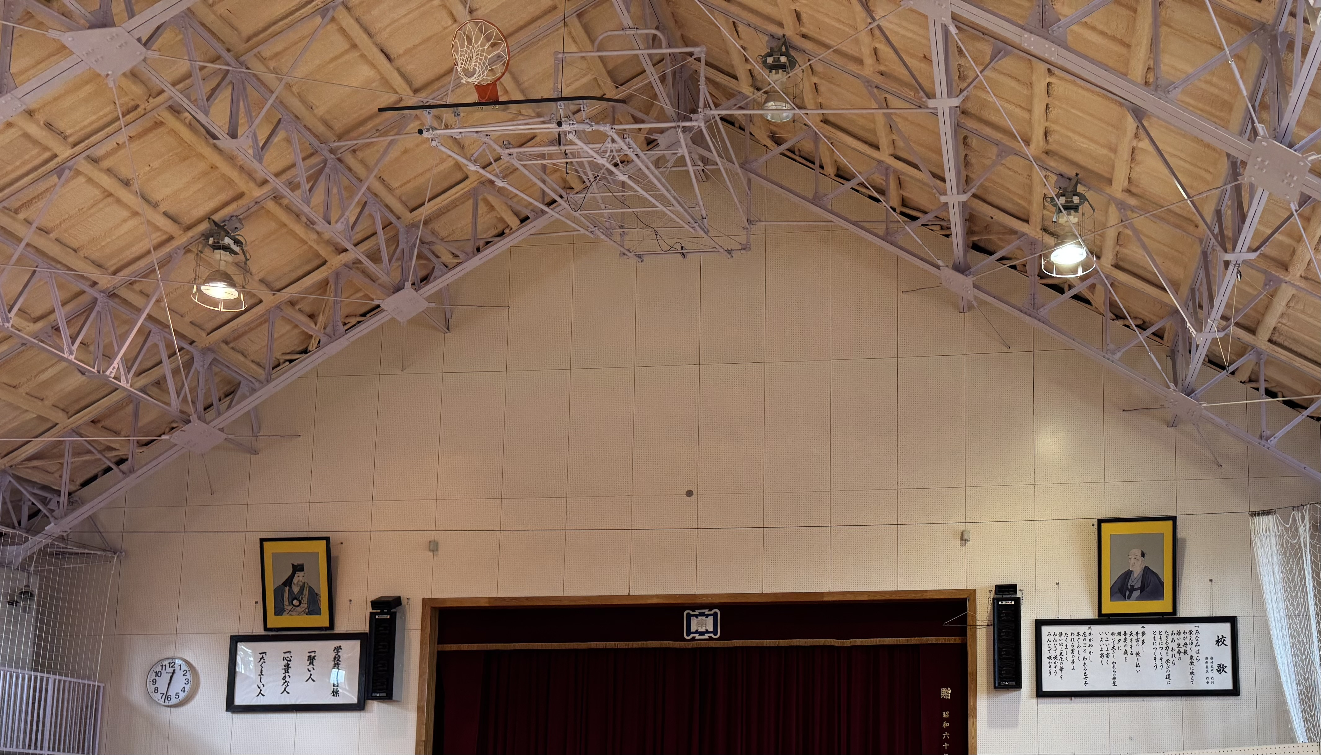 先月、私は米沢市の南原で旧中学校の体育館に行った。