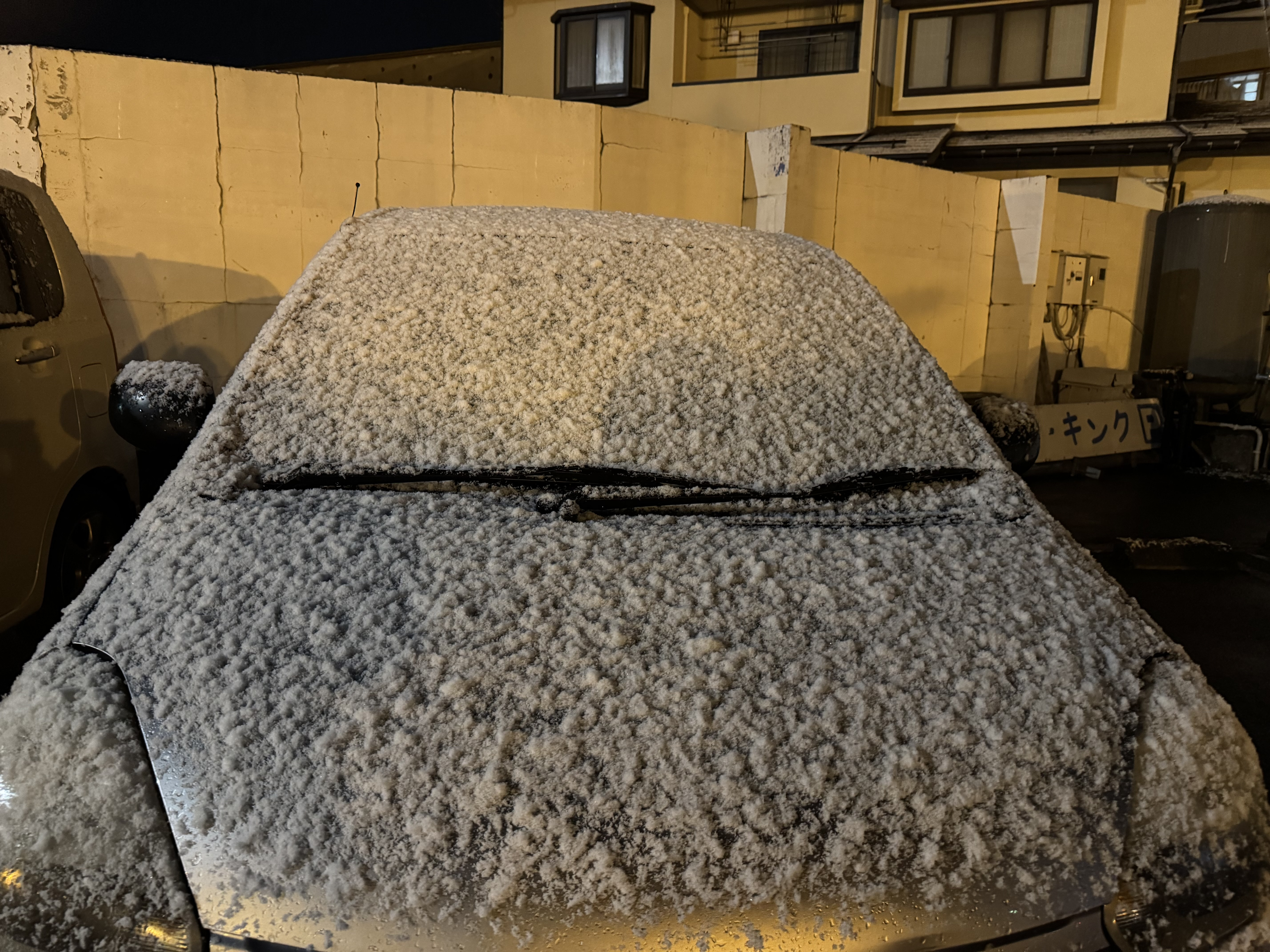 雪が車に積もっていた…😅寒かった。やっぱり、防寒着着ていてよかった…😅